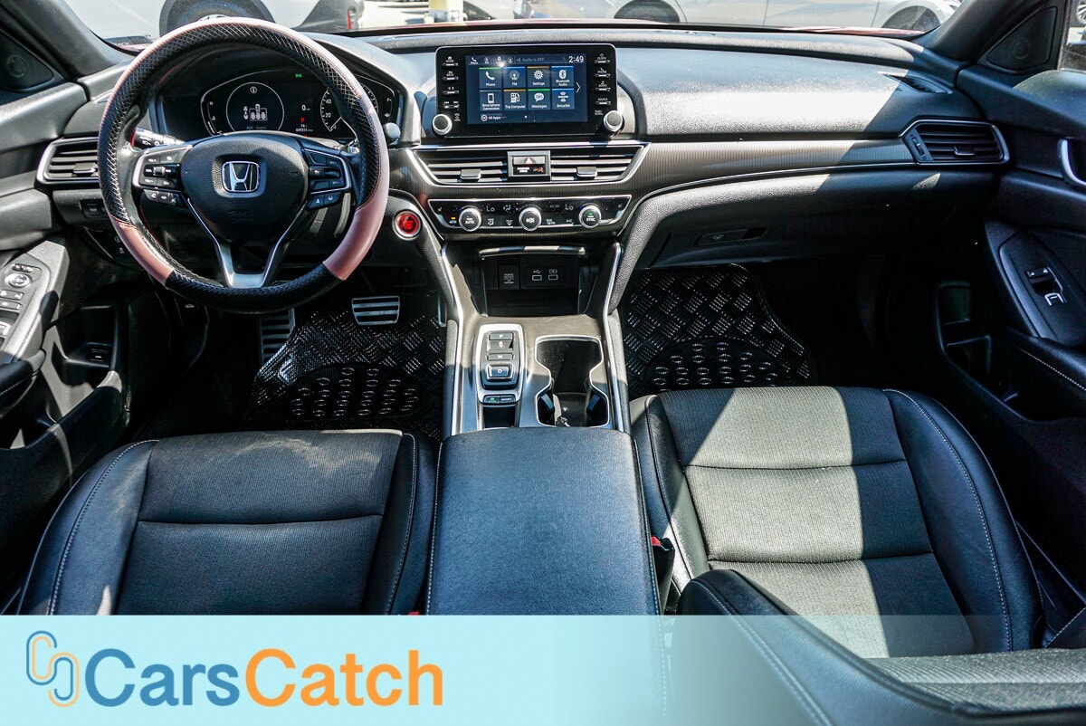 ### Features of the 2022 Honda Accord Sport, 2.0L 4-Cylinder Engine (252 HP @ 6500 RPM), Automatic Transmission, Front-Wheel Drive (FWD), Striking San Marino Red Exterior, Luxurious Black Interior