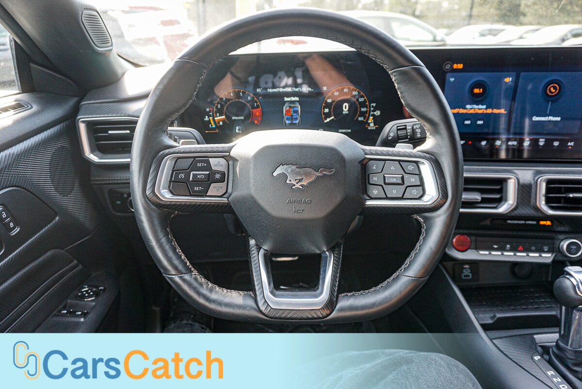 Unleash your inner driving enthusiast with the 2024 Ford Mustang GT Premium, a true icon of performance and style. This striking coupe, in a sleek Dark Matter Gray Metallic finish, is powered by a robust 5.0L V8 engine that delivers an exhilarating 486 horsepower, ensuring electrifying acceleration with every press of the pedal. Inside, you're embraced by luxurious black leather seating and a suite of advanced features, including dual-zone climate control and heated seats, all designed for your ultimate comfort. With cutting-edge technology like Bluetooth, Apple CarPlay, and a back-up camera, this Mustang ensures you're always connected and in control. Don't miss the chance to experience the thrill of driving this legendary muscle car – come down for a test drive today! ("PREVIOUS ACCIDENT")